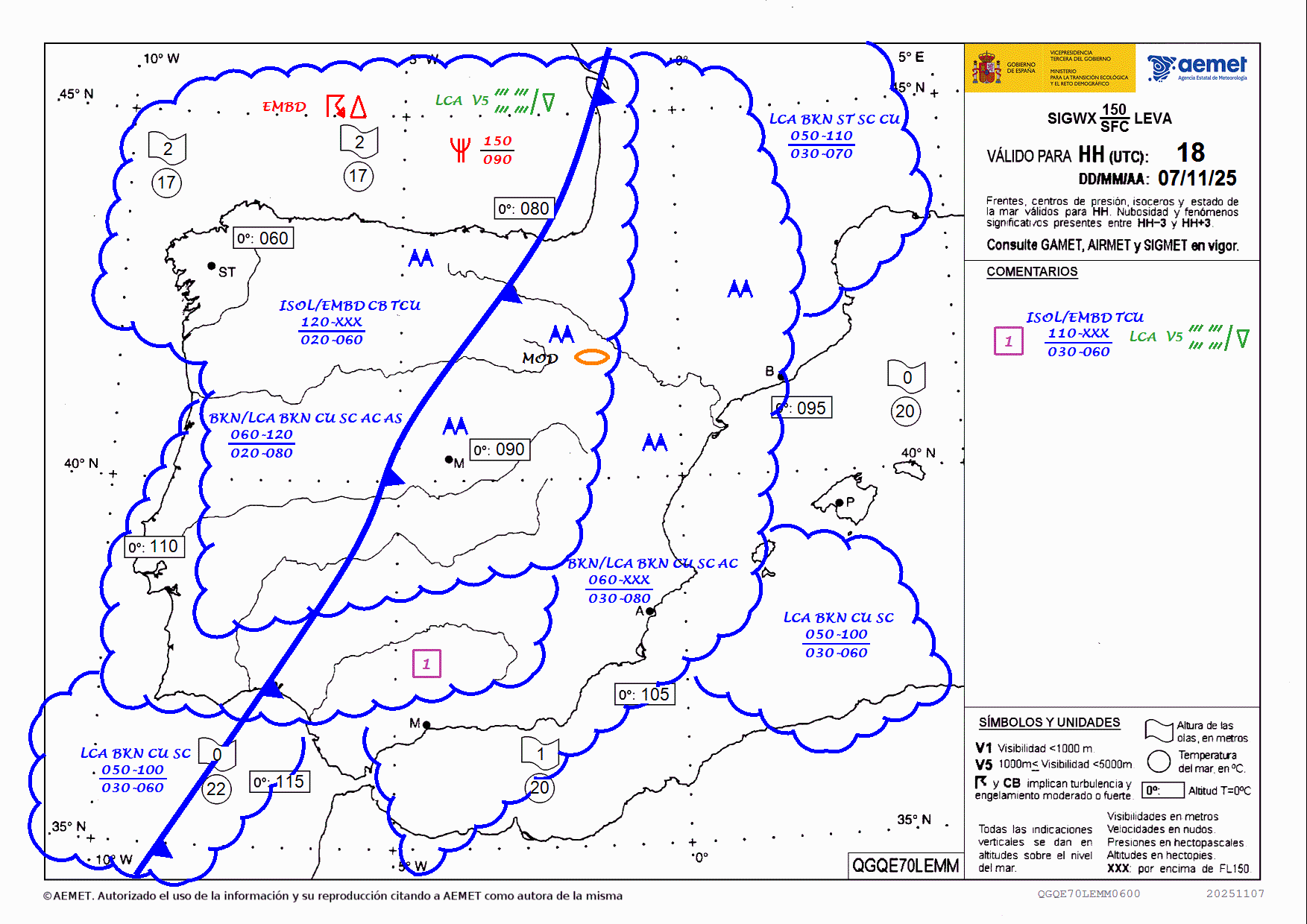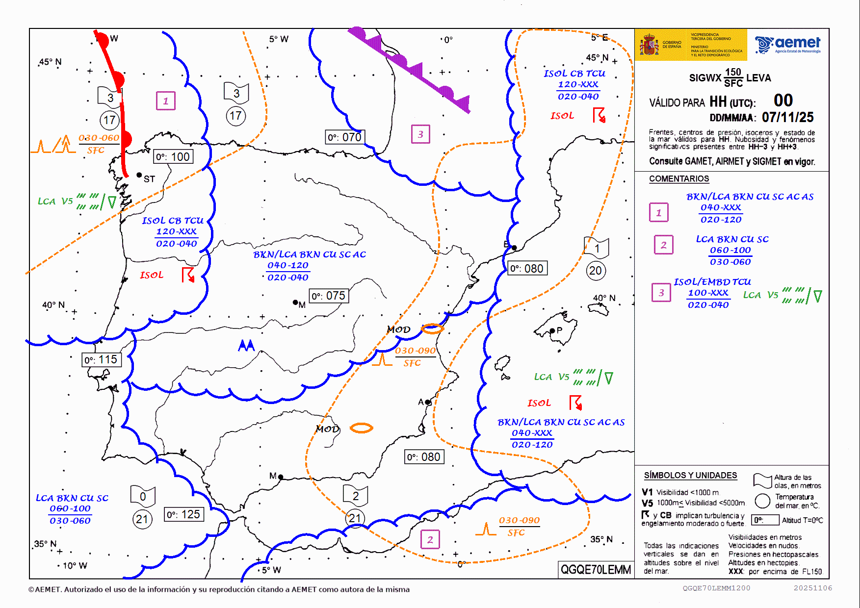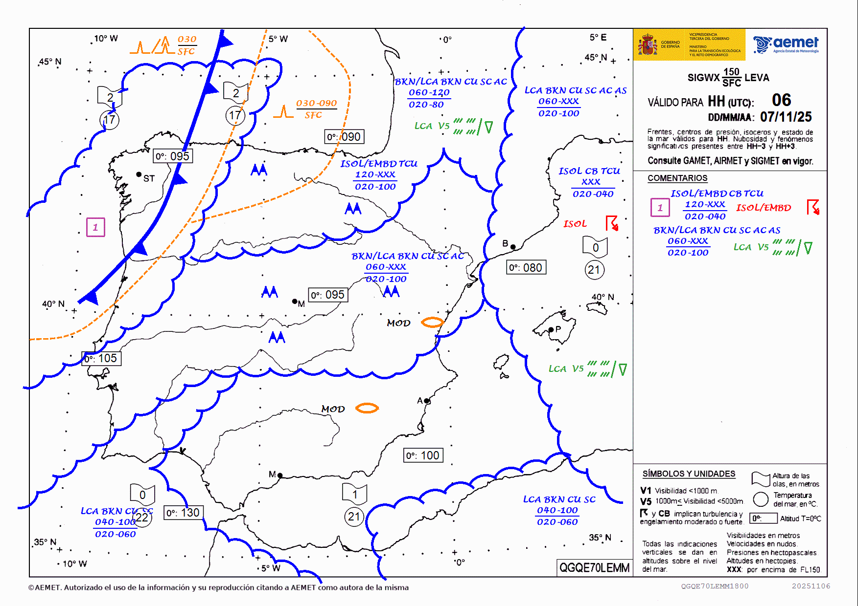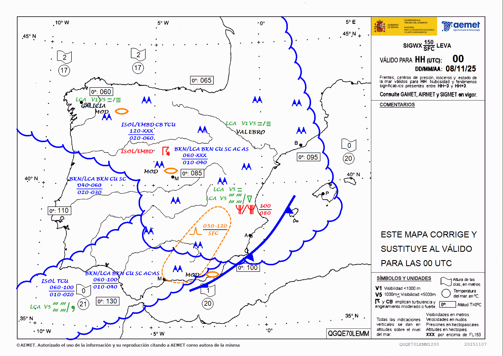 The meteorological information listed is used in the practice of students in the pilot courses at our Flight Training Organisation ATO, so it may not be current and should be used at your own risk. AERBRAVA is not responsible for its use.