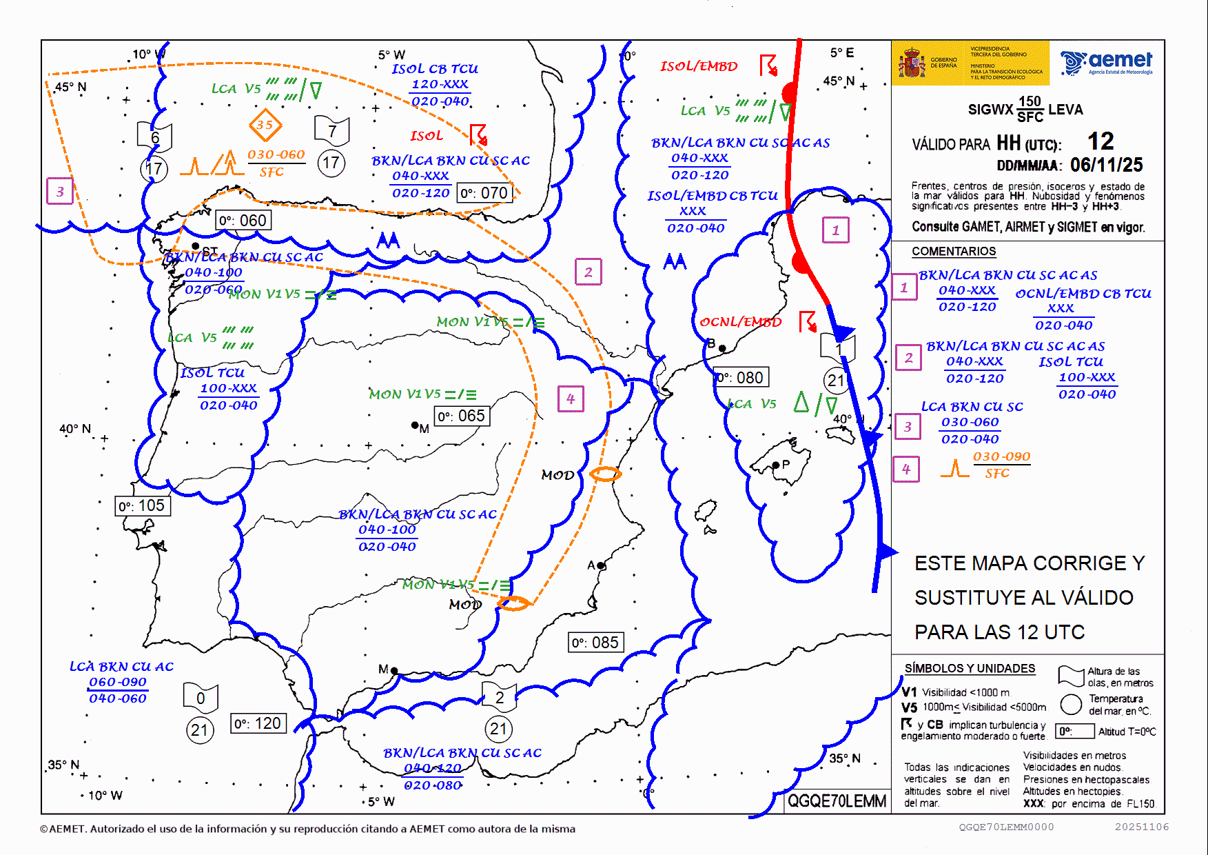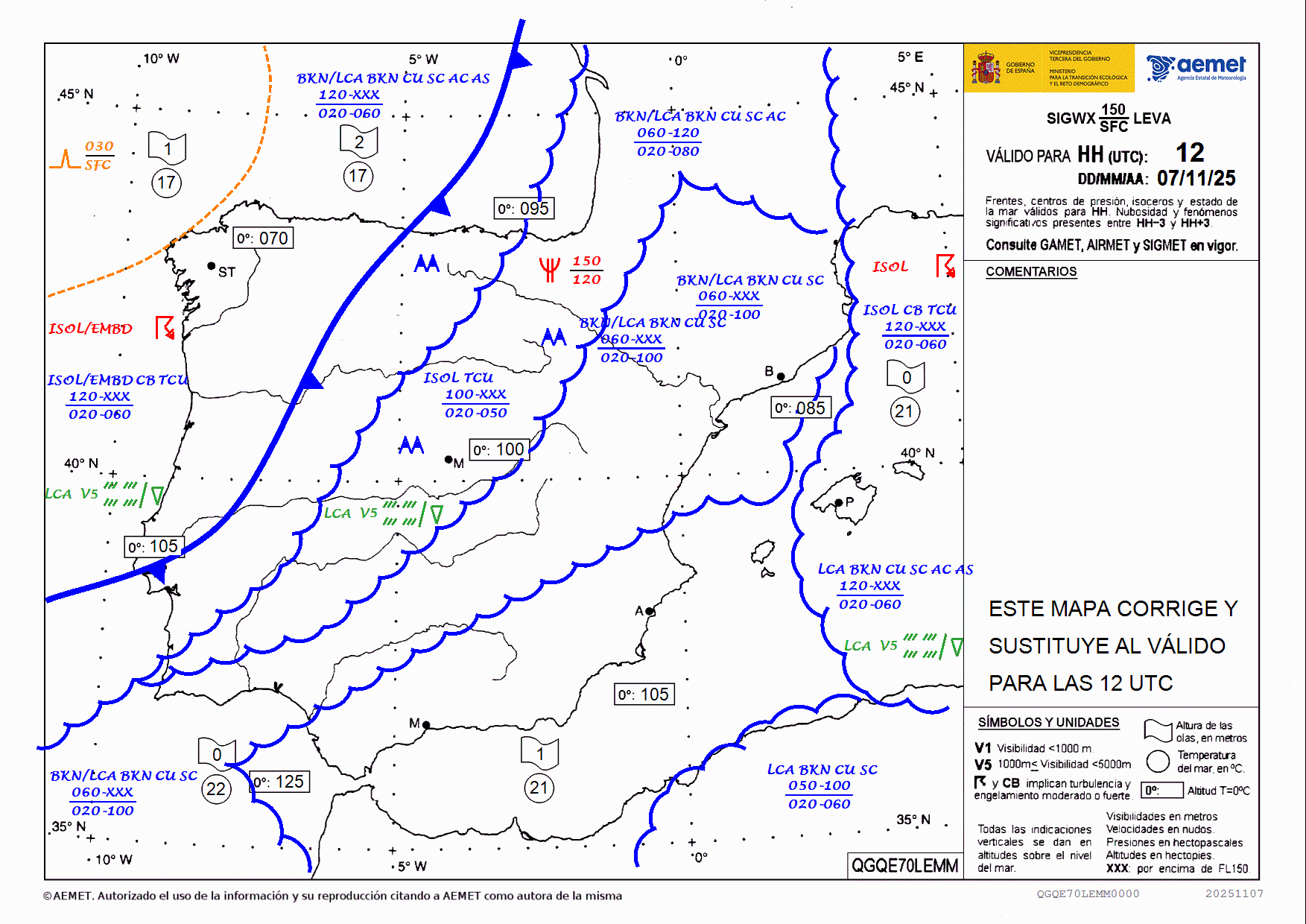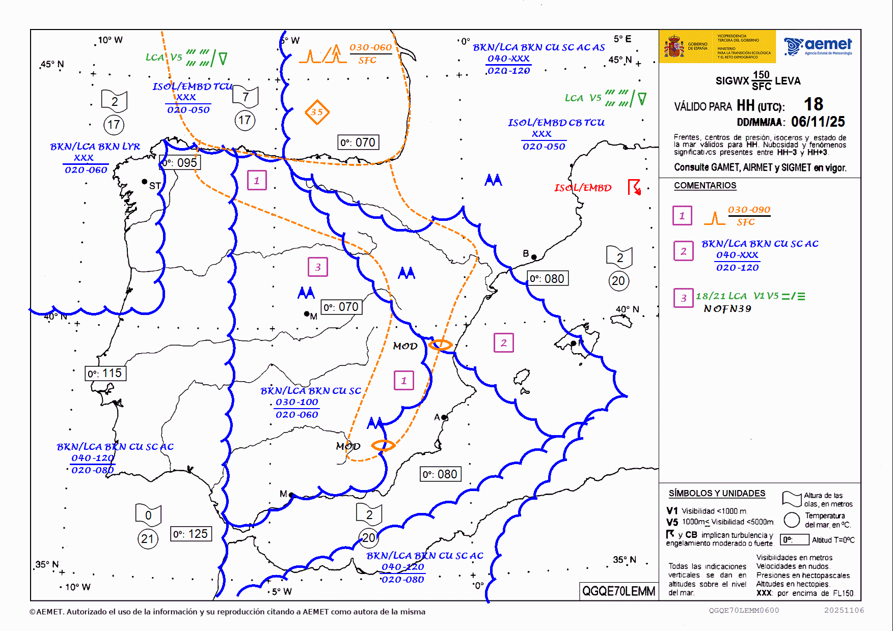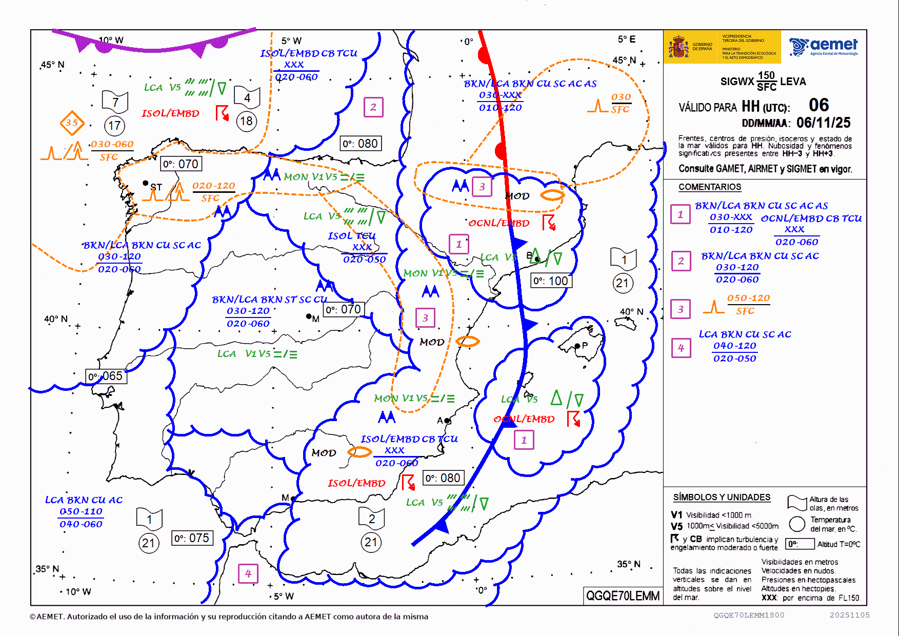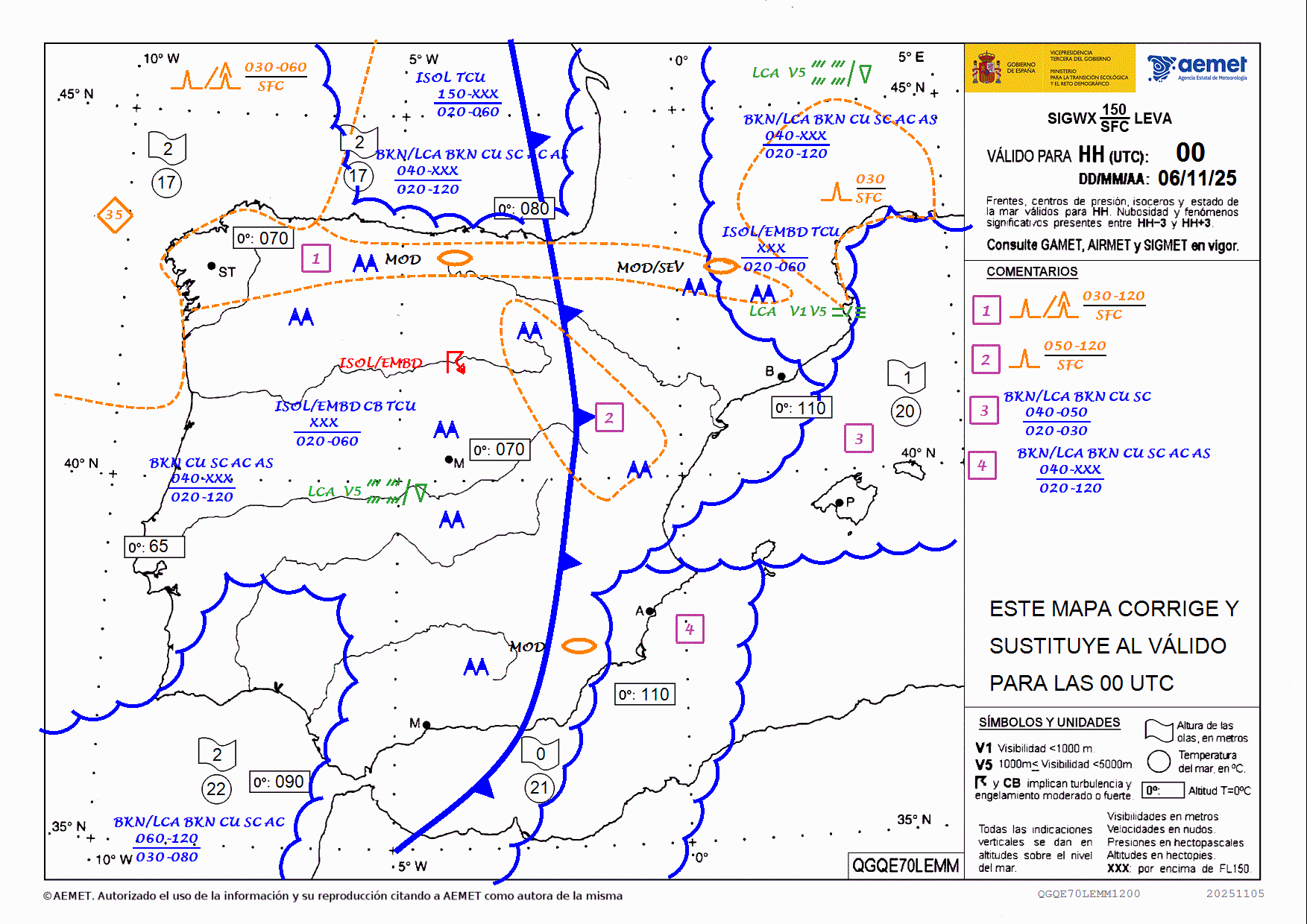 The meteorological information listed is used in the practice of students in the pilot courses at our Flight Training Organisation ATO, so it may not be current and should be used at your own risk. AERBRAVA is not responsible for its use.